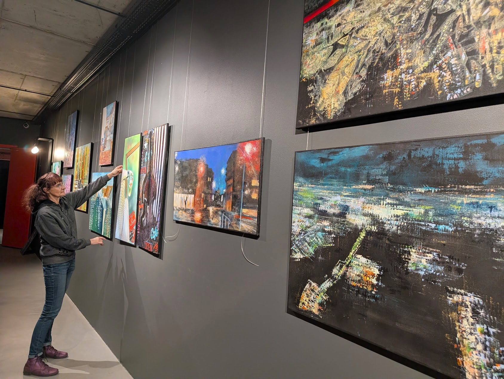 Kunstnik ise kirjeldab väljapanekut nii: „Tegelen värviga. Viimasel ajal on värvid moodustanud linnu. Linnu, mida ma tunnen ja ei tunne ka. Ühte on sulanud kodulinna Tartu ja maailma eri linnade vaated. Lisaks kujunditele mängib olulist rolli ka teose “temperatuur”. Kummalisel kombel ja endalegi üllatuseks, on see enamasti soe. Praeguse väljapaneku “linnalisad” on vahelduseks linnavaadetele ja näitusele rütmi andmiseks“.